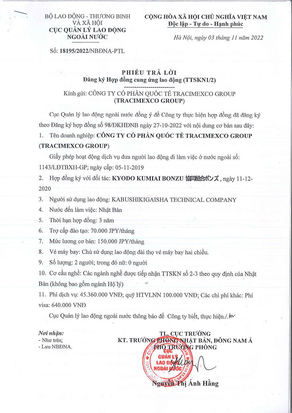 Hàng nghìn người lao động Việt Nam được TRACIMEXCO GROUP phái cử sang Nhật làm việc trong những năm qua đều được cam kết đảm bảo mức thu nhập và chế độ đãi ngộ theo đúng quy định của pháp luật hiện hành tại Nhật Bản