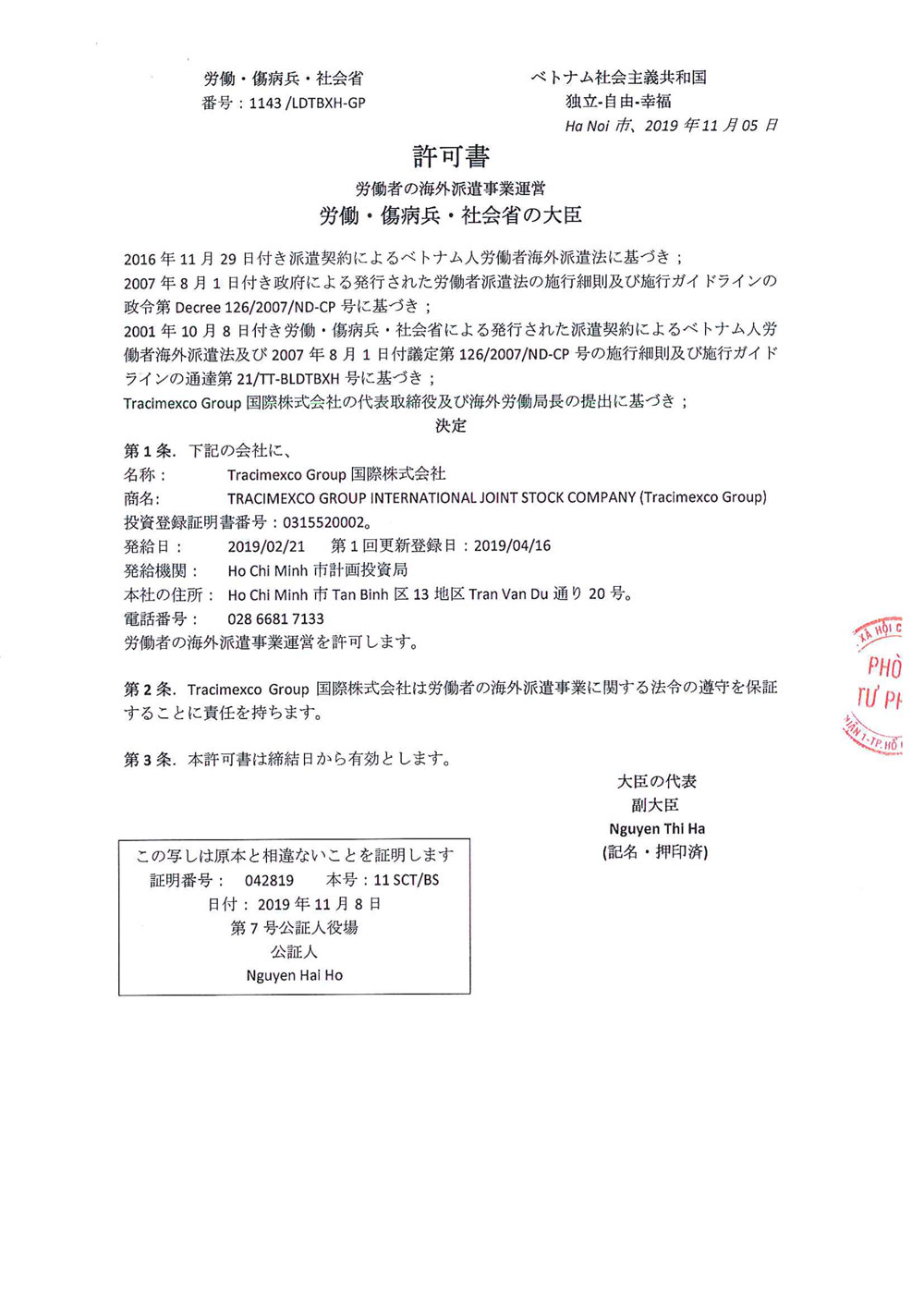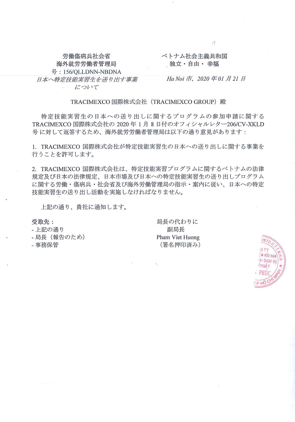 Với những bước phát triển nhanh, mạnh và bền vững , TRACIMEXCO GROUP hiện nay là một trong những đơn vị uy tín hàng đầu hoạt động trong lĩnh vực đào tạo và cung ứng nguồn nhân lực cho thị trường lao động tại Nhật Bản.